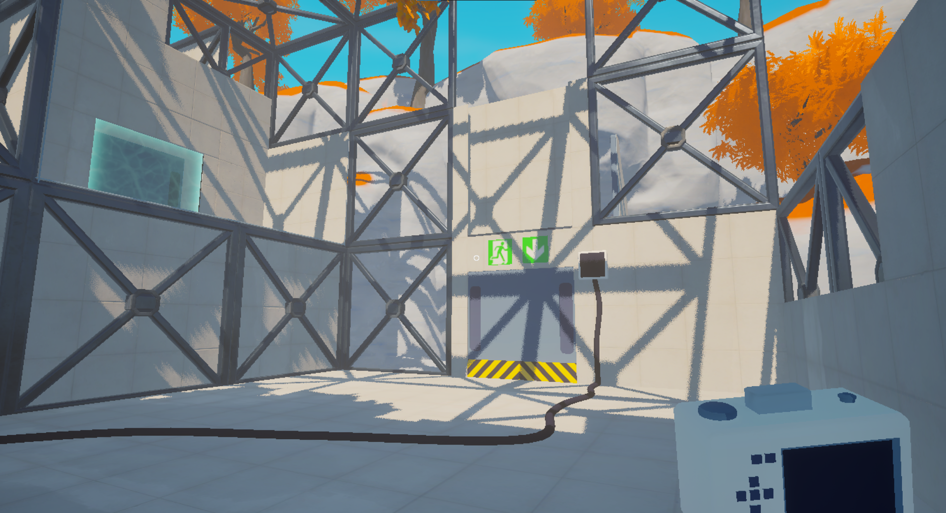 This change affected a bit of the level design, since the player can now stand and activate an infinite amount of floor buttons if they are in view, some of the floor buttons had to be separated from the line of sight so that the player cannot pause them.